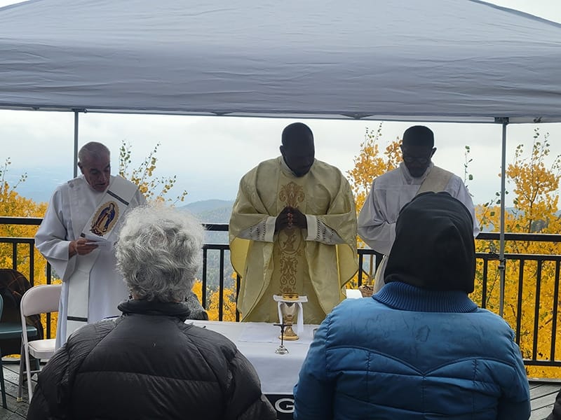 “Mass on the Mountain” was a beautiful and uplifting experience. Just as Jesus would climb a mountain to pray, we did the same to keep following His journey in ourselves. Those who have attended the event said they enjoyed being closer to God and nature. Do not worry that you missed this year be ready to attend “Mass on the Mountain” next year at 10 AM Second Saturday of October 10th 2026. remember, it is at the Lookout at the end of State Road 475, just before the Santa Fe Ski basin.