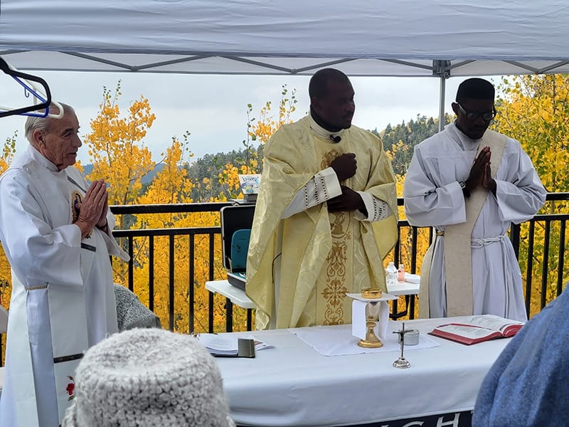 “Mass on the Mountain” was a beautiful and uplifting experience. Just as Jesus would climb a mountain to pray, we did the same to keep following His journey in ourselves. Those who have attended the event said they enjoyed being closer to God and nature. Do not worry that you missed this year be ready to attend “Mass on the Mountain” next year at 10 AM Second Saturday of October 10th 2026. remember, it is at the Lookout at the end of State Road 475, just before the Santa Fe Ski basin.